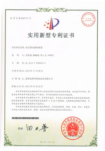 重視知識產權,不斷進行創(chuàng)新,憑著以技術行業(yè)的理念,TST公司又獲得了由知識產權局頒發(fā)的四項發(fā)明利證書,分別是兩項實用新型:臂式擺動跟隨裝置、種便攜式鋼絲繩損傷探測裝置。兩項外觀利:鋼絲繩探傷儀(防爆可攜帶型)、鋼絲繩探傷儀(攜帶式大直徑型)。